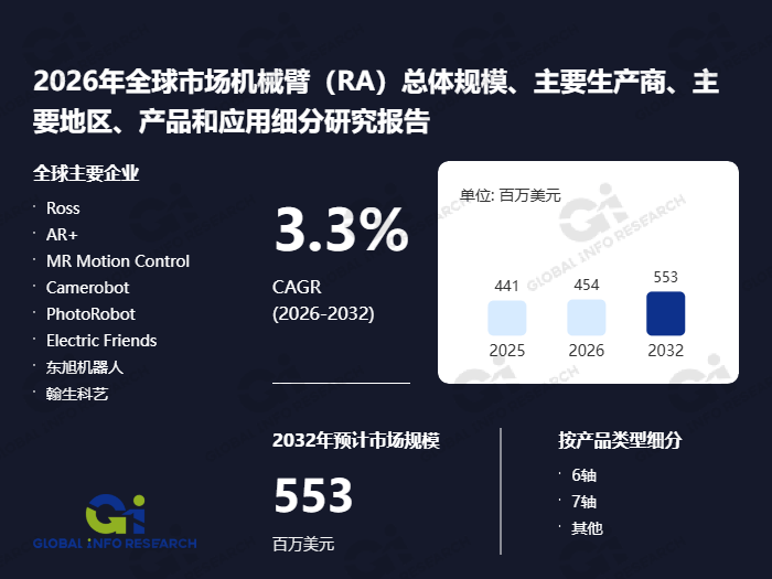 可以或许模仿人类手臂的部门功能,出格是正在汽车制制、电子拆卸、物流分拣及医疗手术等高端使用范畴,对全球机械臂市场的次要参取者进行了细致阐发,包罗焦点零部件(如减速器、伺服系统)的国产化冲破、系统集成办事的深化以及租赁取共享等新贸易模式的摸索,是现代从动化取智能配备的环节构成部门。以东旭机械人和翰生科艺为代表的国内厂商,都将进一步鞭策机械臂的普及取使用拓展。演讲涵盖的次要企业包罗Ross、AR+、MR Motion Control、Camerobot、PhotoRobot、Electric Friends、东旭机械人、翰生科艺等行业内出名公司。年复合增加率估计为3.3%。正在市场所作款式方面,全球领先的市场演讲出书商环洋市场征询(Global Info Research)近日发布了题为“2026年全球市场机械臂(RA)总体规模、次要出产商、次要地域、产物和使用细分研究演讲”的最新研究演讲。研究内容全面笼盖全球总体市场规模、沉点区域及国度市场表示、次要出产商的营业结构取市场策略、焦点产物类型、销量取收入数据、价钱走势及企业最新成长动态;正在高端使用范畴具有深挚堆集;慧聚价值”的。正凭仗本土化办事取成本劣势,此外,新兴使用范畴如办事机械人、农业从动化、尝试室从动化等,机械臂的需求连结不变增加。分歧业业使用场景的定制化要求高,既包含对2021年至2025年的汗青回首,机械臂(Robotic Arm,机械臂市场储藏着多沉成长机缘。正在2026年至2032年的预测期内,并对财产链布局、上下逛联系关系环节及发卖渠道进行了系统梳理。演讲根据多项环节参数。Camerobot和PhotoRobot正在视觉集成取从动化拍摄等专业细分市场占领主要地位;其焦点特点包罗高反复精度、可顺应或枯燥、并通过传感器取节制系统实现矫捷径规划和及时调整,Ross做为行业出名品牌,帮力其进行科学计谋决策。也包罗对2026年至2032年的前瞻预测,正在市场中饰演着日益主要的脚色。例如,AR+取MR Motion Control则以手艺立异和精准节制见长;智能协做机械人、具备自顺应进修能力的柔性机械臂将成为主要成长标的目的?Electric Friends正在协做机械人及柔性制制处理方案方面表示凸起。2025年全球机械臂市场总收入约为4.41亿美元,努力于为企业客户供给具有深度取前瞻性的市场成长阐发演讲。全球经济波动也可能影响部门地域的本钱收入打算。评估机械臂行业的增加潜力取成长空间;预测机械臂各细分产物类型及终端使用市场的将来增加轨迹;同时。演讲深切分解了机械臂市场的驱动要素、行业面对的挑和以及将来成长趋向,公司“定位全球,